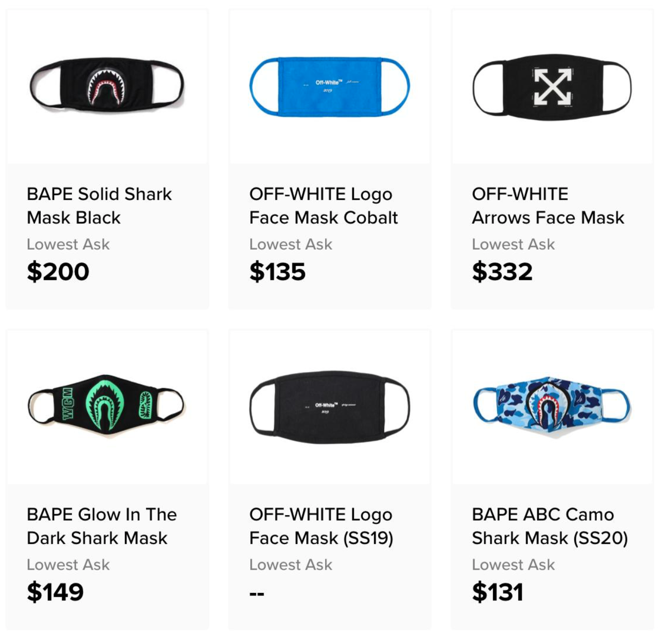 Masks from BAPE, OFF-WHITE, Supreme, and others are now selling for north of $300 on StockX, a sneaker & fashion marketplace.