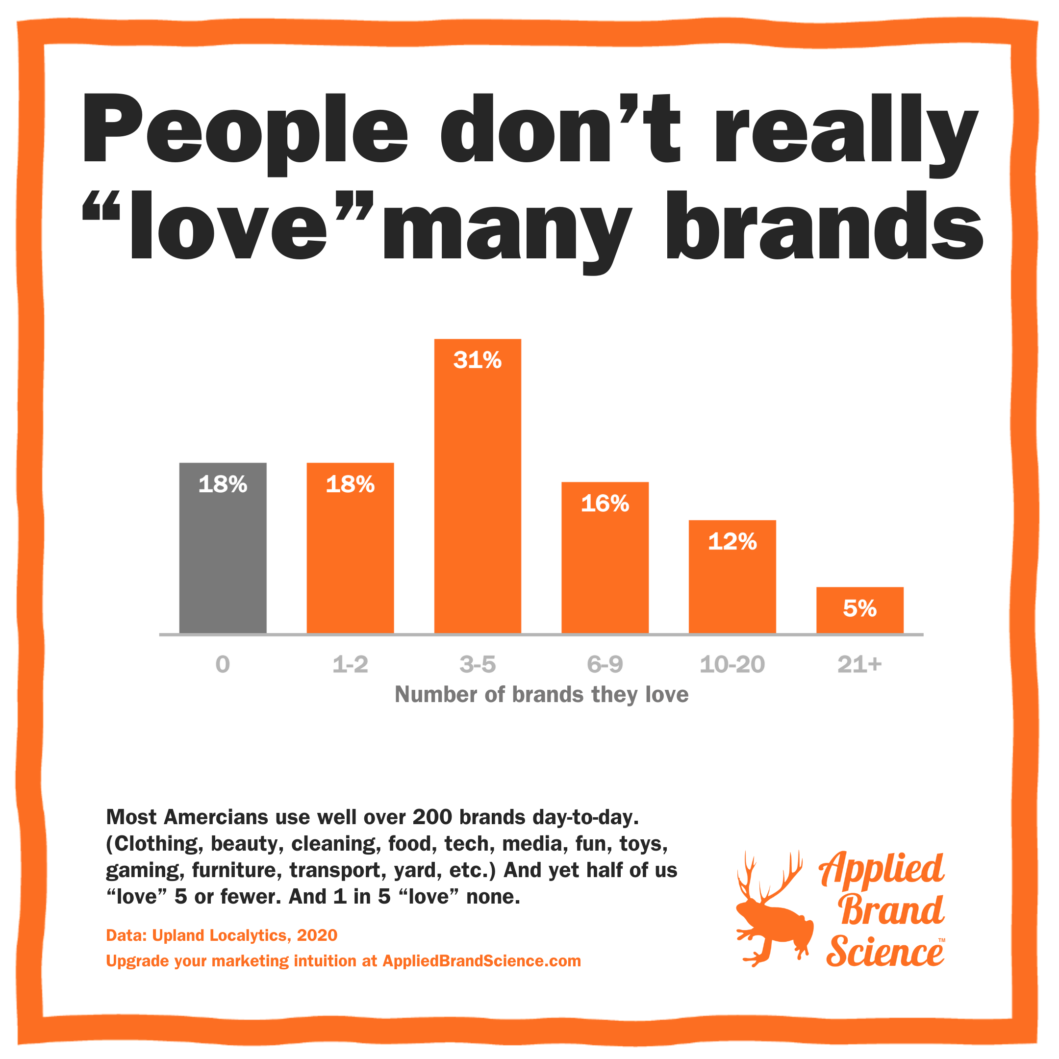 Caveats, of course: what does “love” even mean? Do people even remember all the brands they love for the survey? What about teens & tweens? And how the heck does “love” relate to buying — if at all??