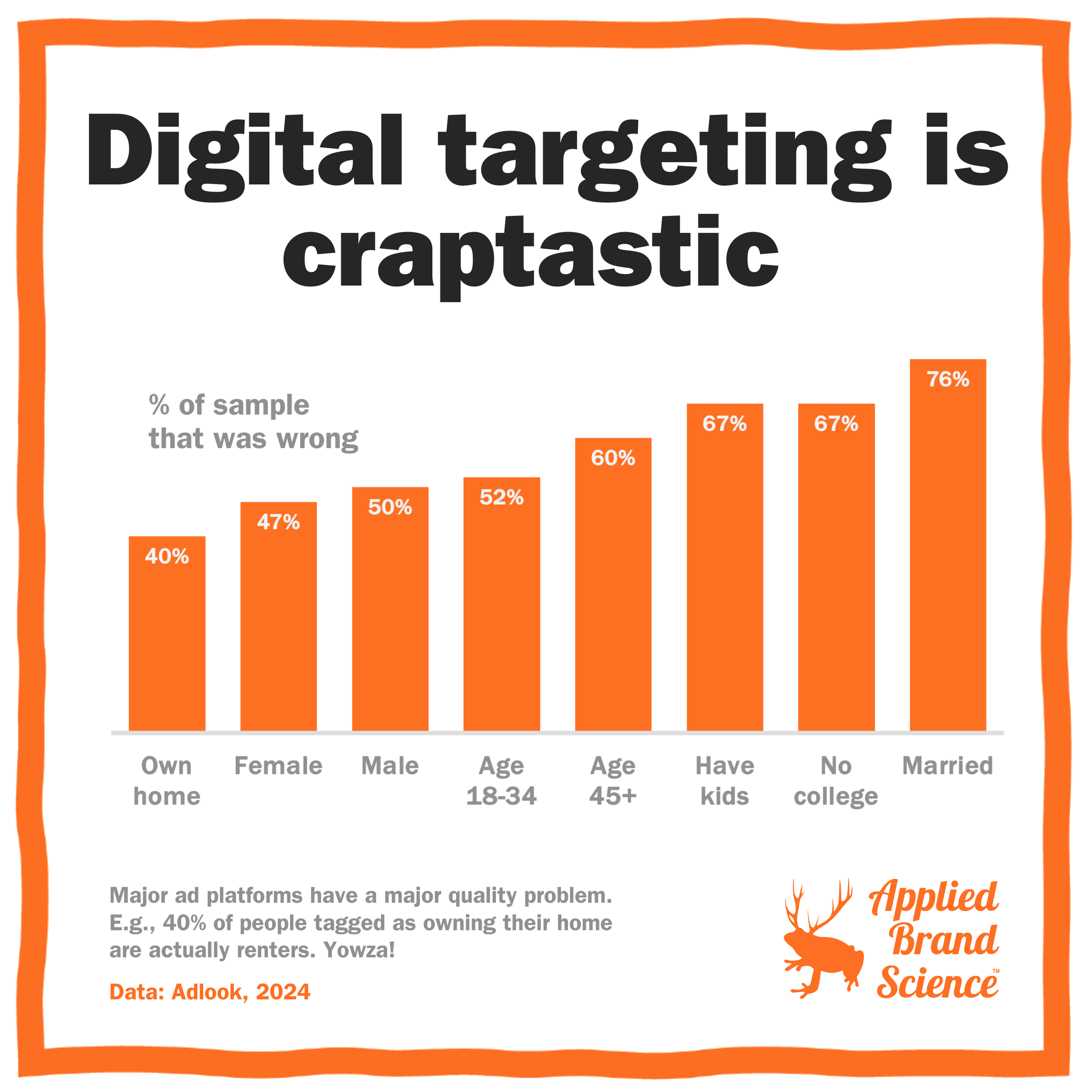 🍊 When it comes to digital ad targeting, don’t trust; verify! (E.g., run experiments to check your provider’s work.)