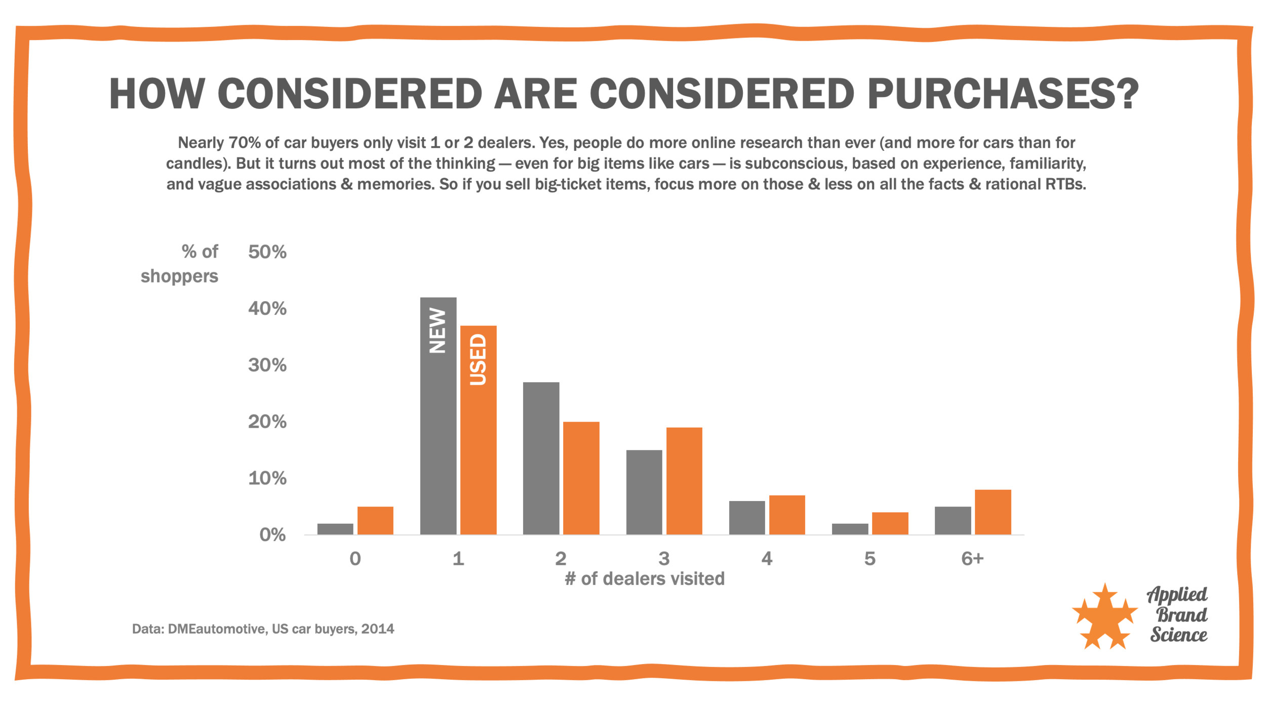 This bit of data, added to a bunch of others, suggests that most of the thinking — even for big-ticket items like trucks — is subconscious. It's based on experience, comfort, familiarity, vague associations, & old memories.