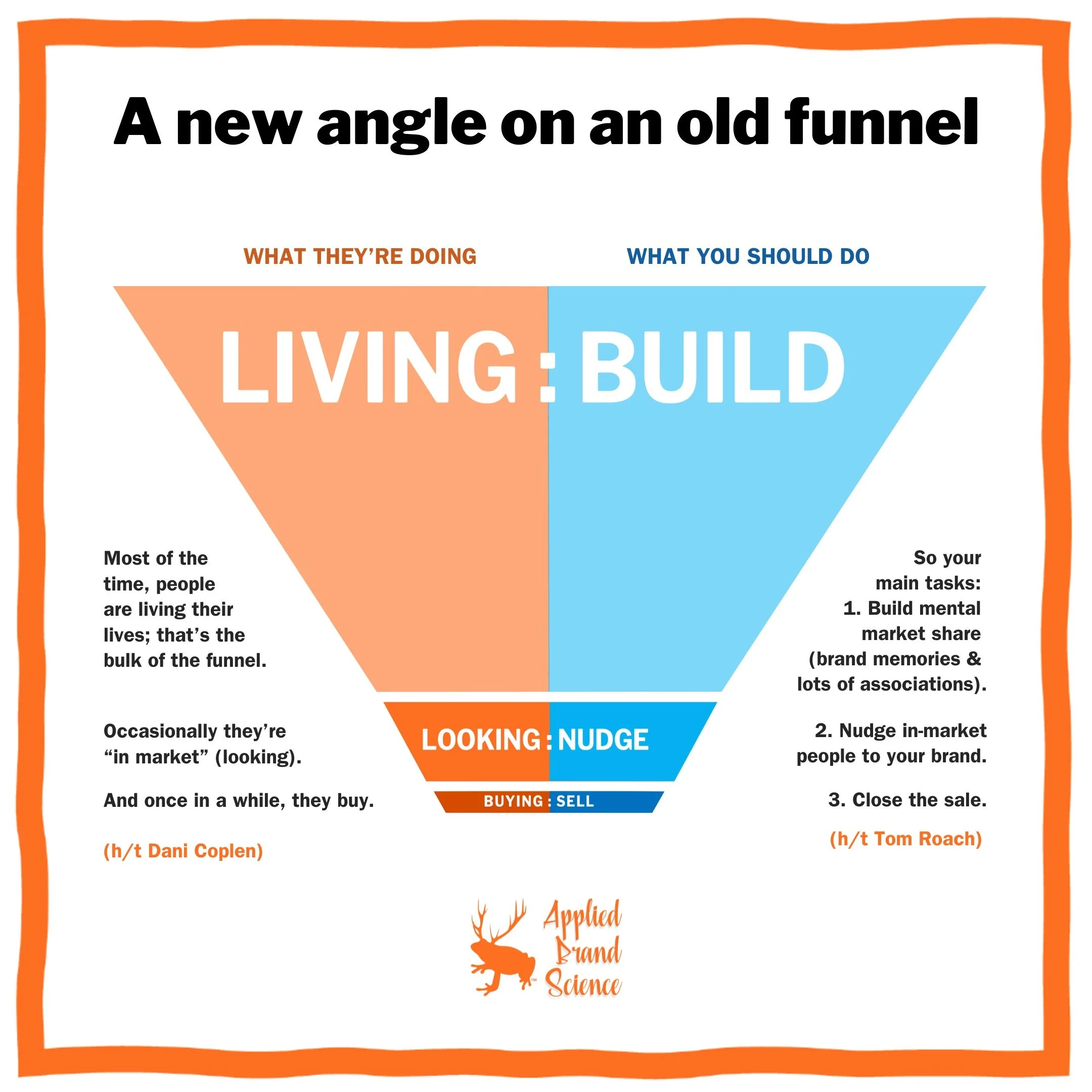 The original funnel doesn’t quite line up well with the way people spend their time, the way our brains really work, and what marketing should really focus on in each stage.