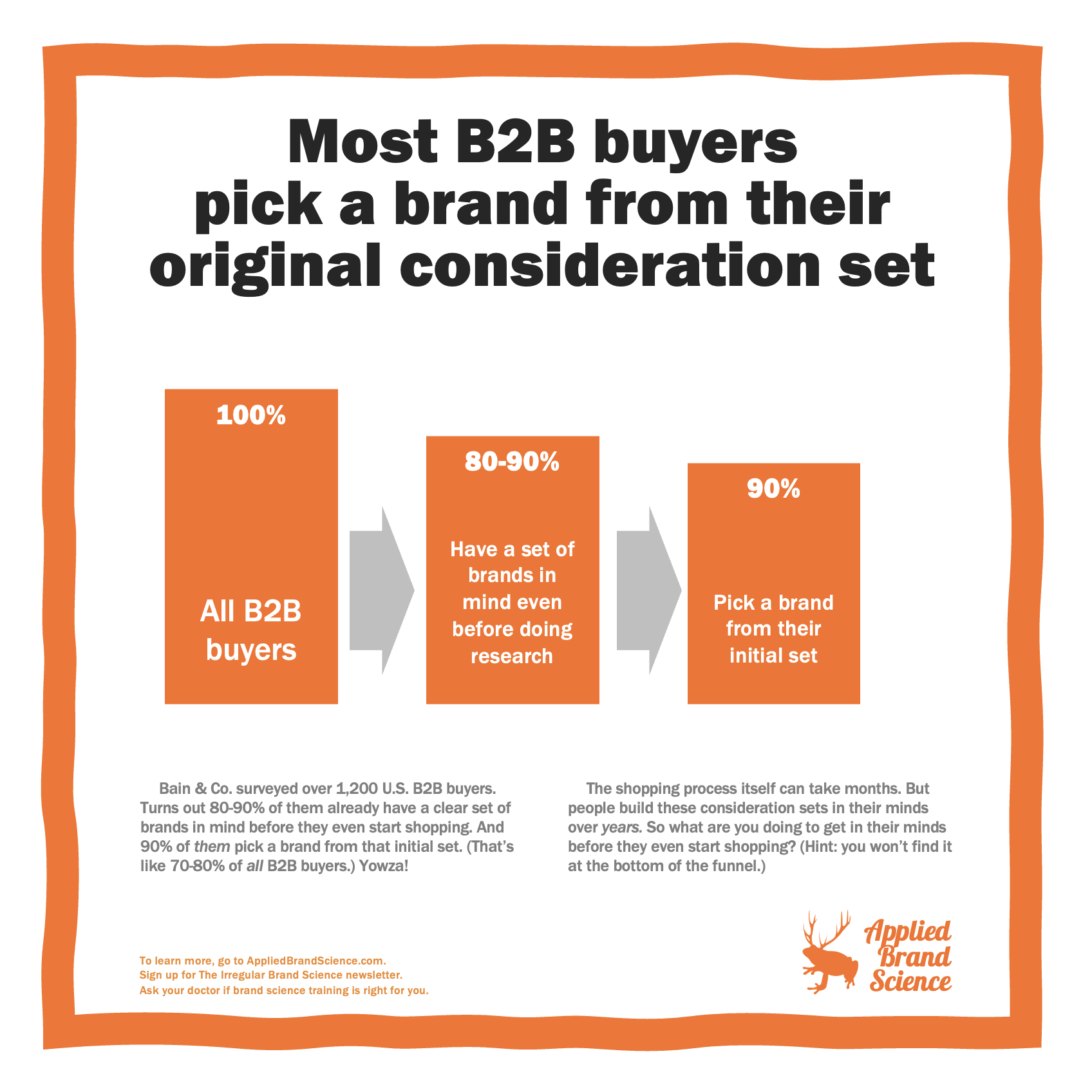 And 90% of them pick a brand from that initial consideration set. (That’s like 70-80% of all B2B buyers.) Yowza!