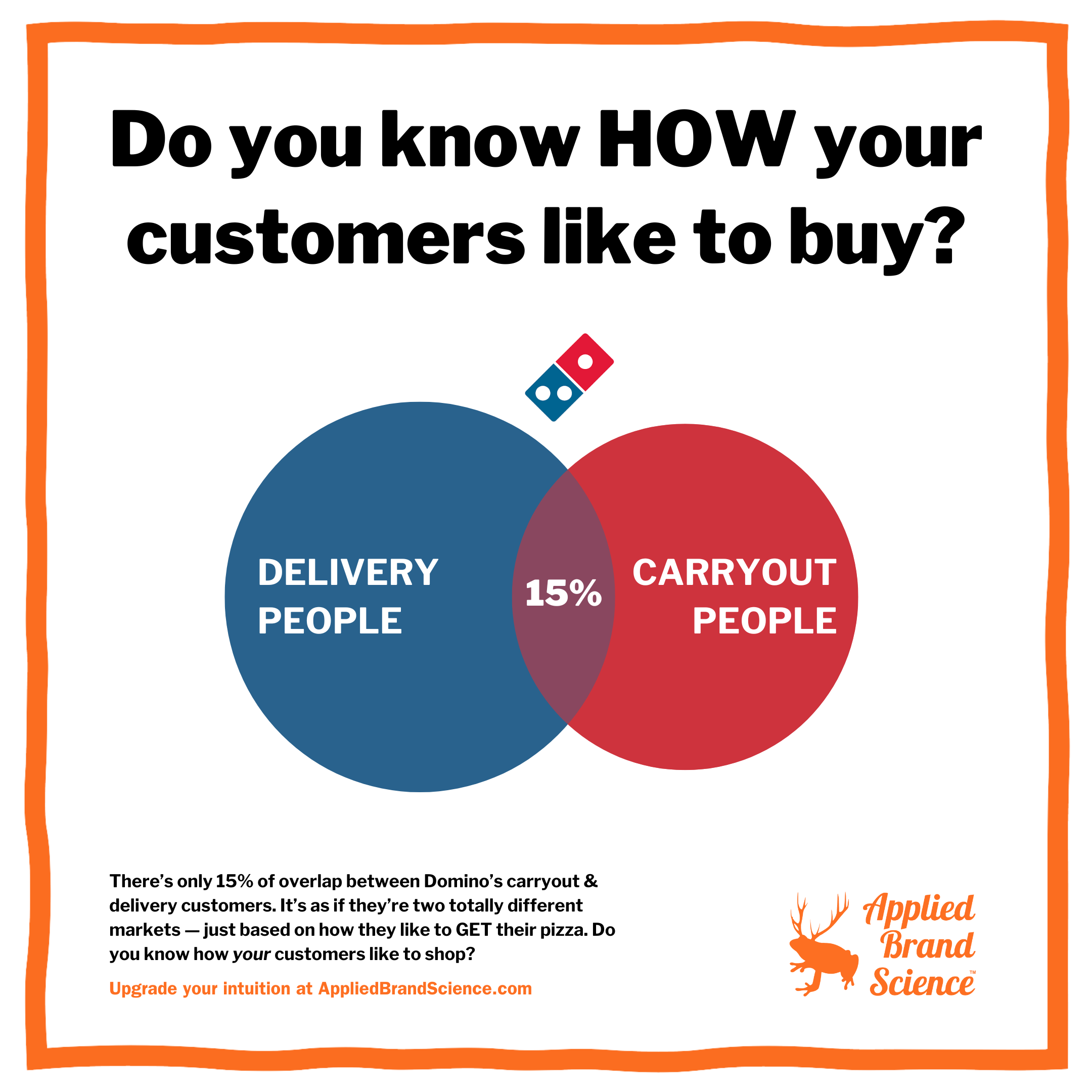 Domino’s, f’rinstance, recently revealed that there’s only a 15% overlap between their carryout customers and their delivery customers.