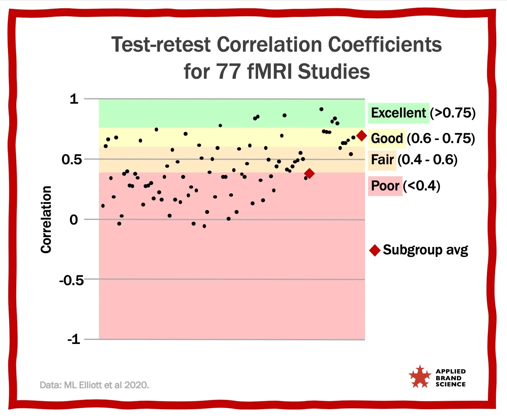 No. There are studies that have shown reliability across test/retest fMRI measures. And other studies show the metrics are predictive of in-market marketing results — sometimes much more predictive than surveys or focus groups.