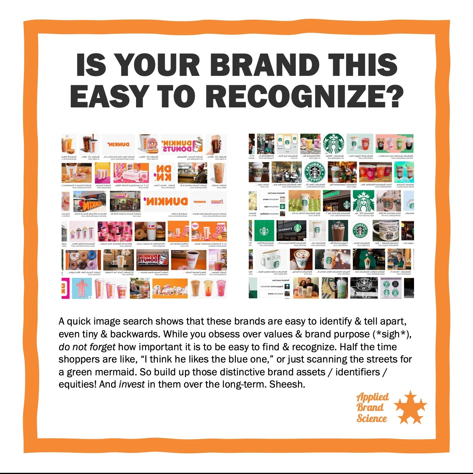 And it’s a start to diagnosing how good your “distinctive brand assets” game is. (AKA brand identifiers, ownable brand equities, etc.)