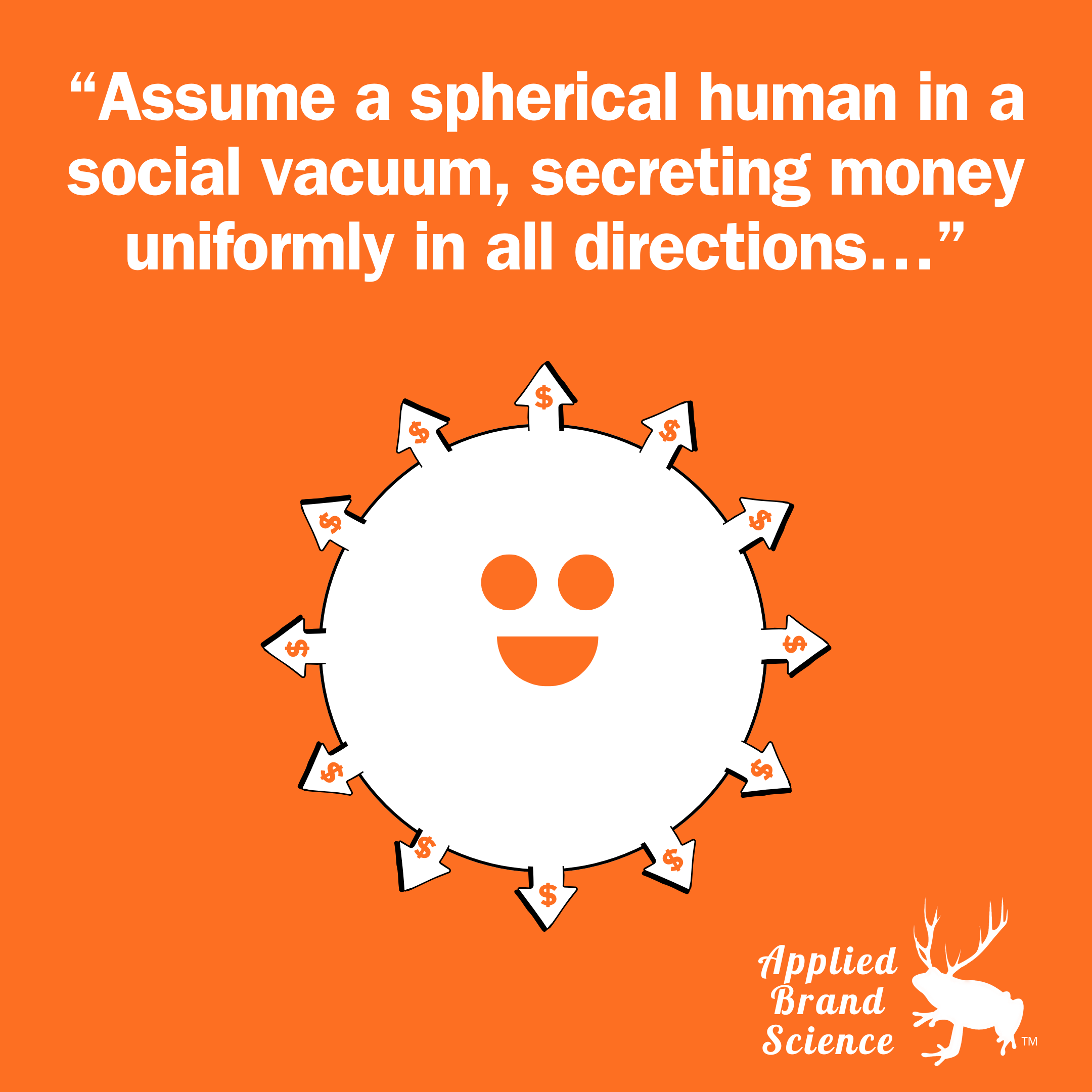 The same is true with the NBD-Dirichlet. It basically assumes a “spherical shopper” in a social vacuum, extruding money uniformly to all brands in its repertoire (so to speak ha ha). AND YET, it still does an amazing job of predicting all kinds of things about shoppers, brands, and markets.