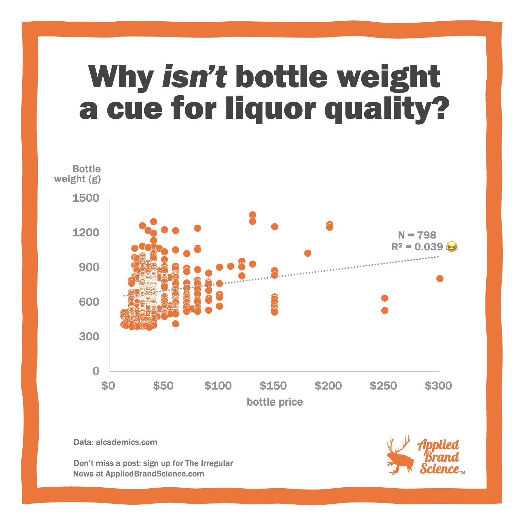 As a marketer and brand scientist (and the proprietor of a speakeasy), it baffles me that bottle weight isn’t used more often as a symbol of quality for the liquid inside.