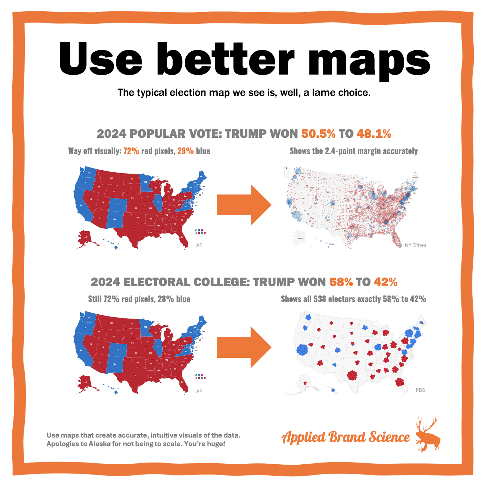 The election map is a great, familiar example of how dataviz can color our view of the world. And that matters in business too.