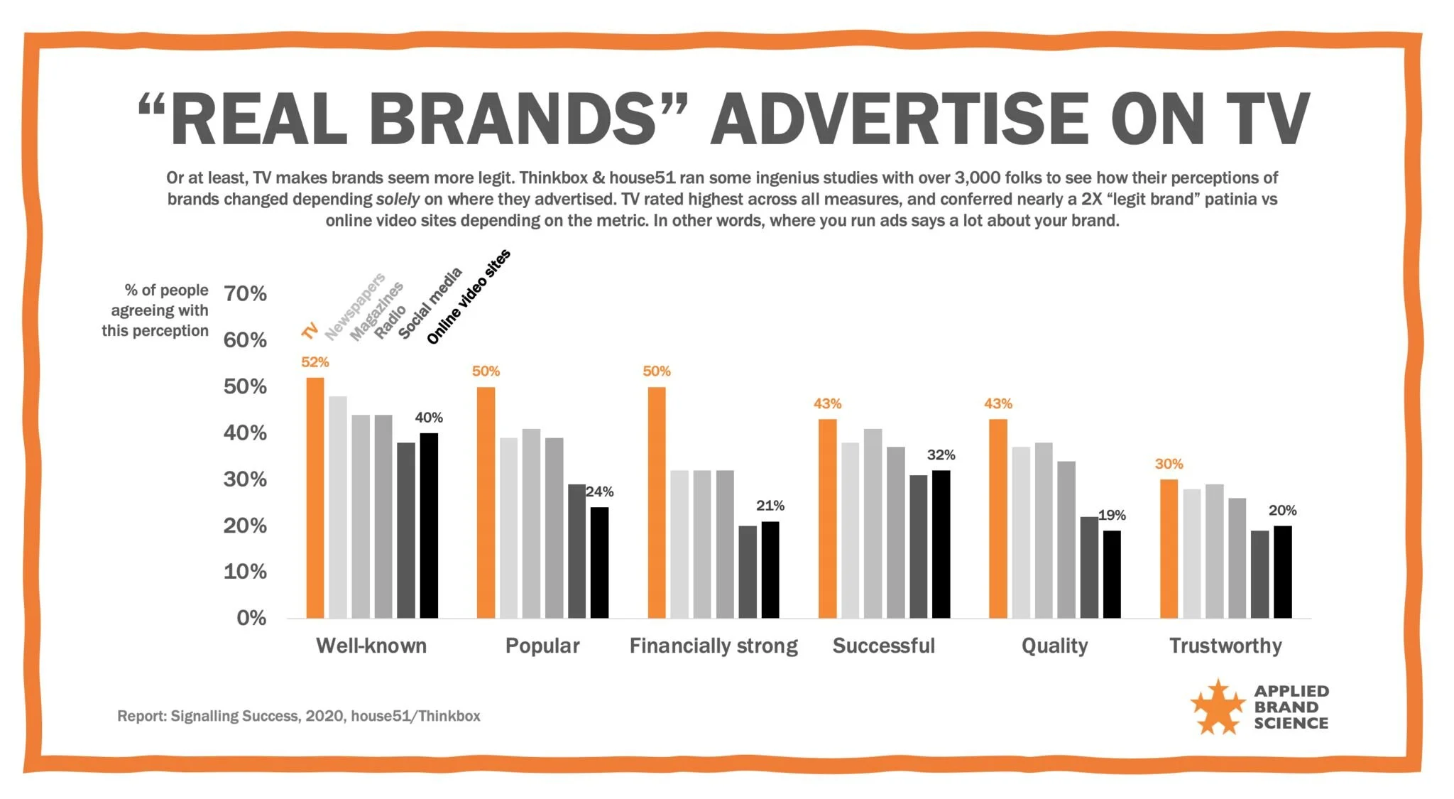 But what about entire swaths of media? If you advertise on TV, does that signal something that advertising on social media doesn't?